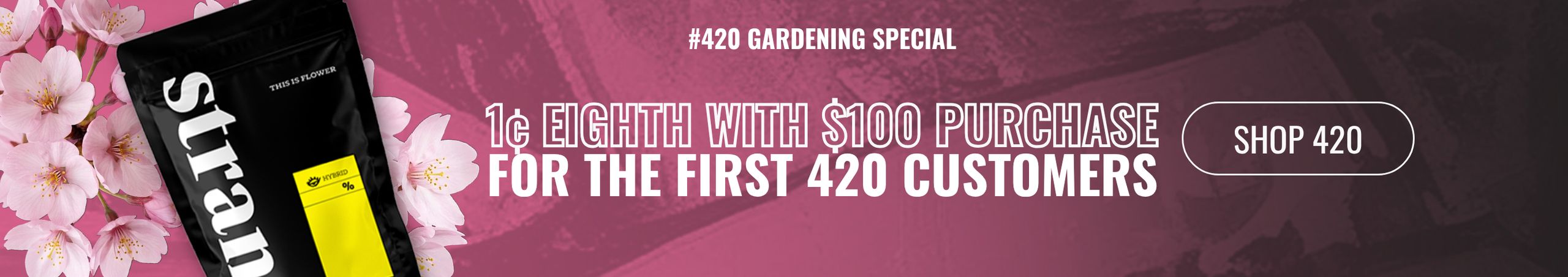 1¢ Eighth with $100 purchase for the first 420 customers