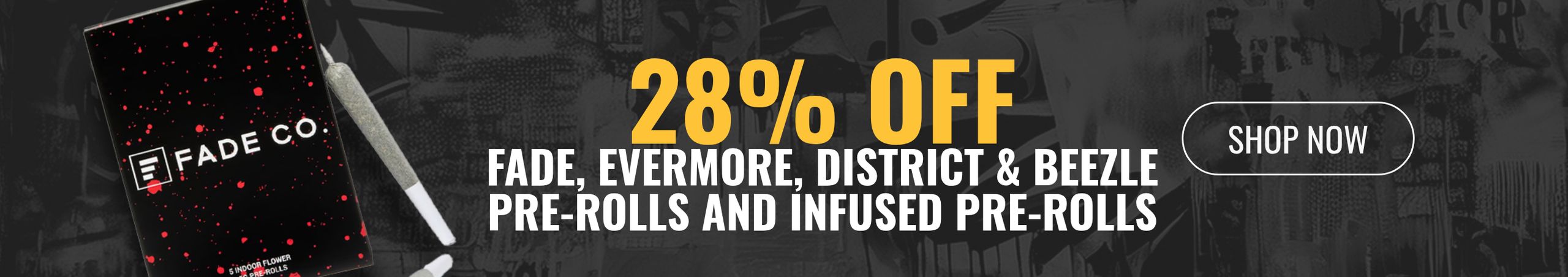 28% off Fade, Evermore, District & Beezle Pre-rolls and Infused Pre-rolls