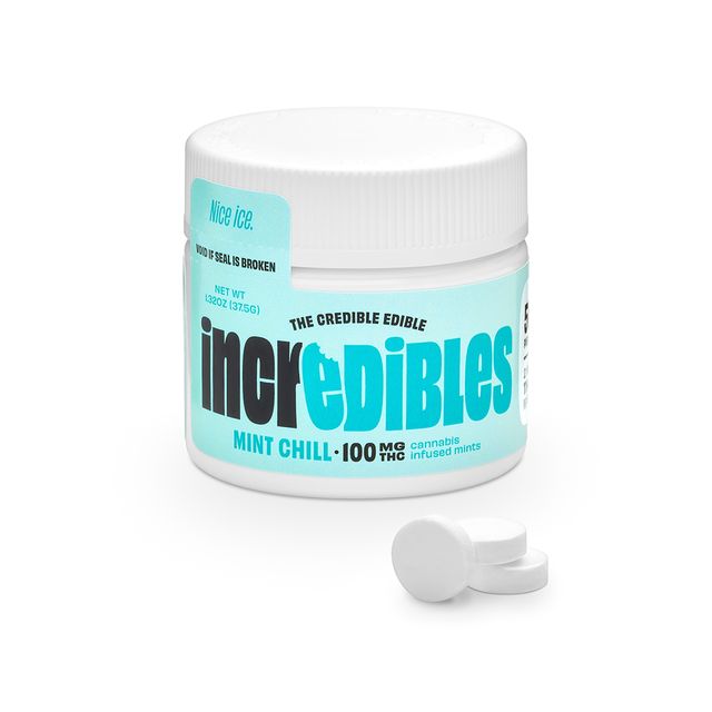 Nice ice. Fresh breath, cooling mint, and a blast of “heck yeah” confidence. It’s go time. incredibles Mint Chill mints offer 100mg THC total, with 2mg THC per mint. Made with 100% pure cannabis oil in a perfectly blended mixture to ensure accurate dosing and consistency.