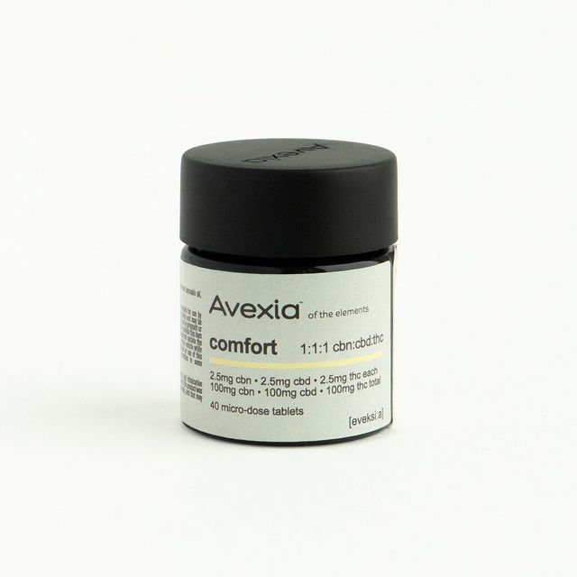 Avexia Comfort tablets contain a cannabinoid trifecta of relaxing CBD, pain-relieving THC, and sedating CBN, with the added benefit of anti-inflammatory and antioxidant-rich turmeric.