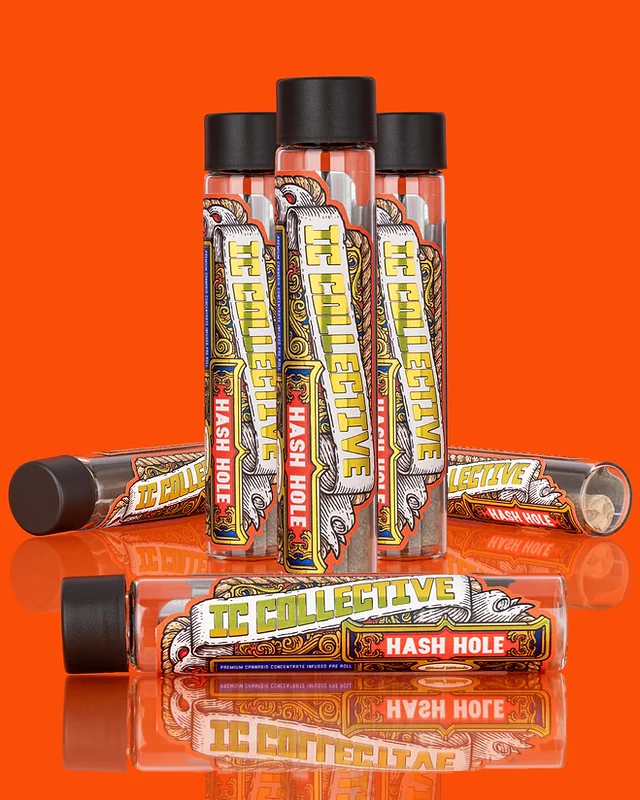 Hand-Crafted Hash Holes from IC Collective contain 1.5 grams of flower & .3 grams of hash rosin. Artisanal & strain-specific, each rosin infused joint is sealed in a glass tube for freshness. Enjoy the best of both worlds at once with an IC-branded compass belly band, ready to steer your high in the right direction.