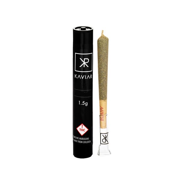 Flower infused with hash oil, rolled in kief. Ground and expertly rolled with a luxurious KAVIAR branded glass tip on every pre-roll.